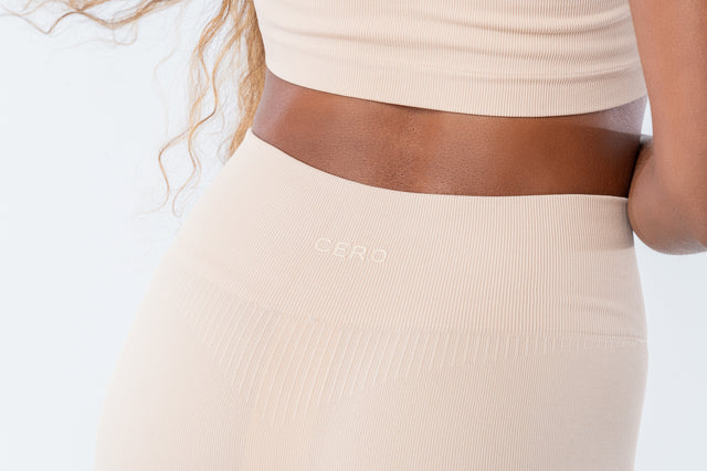 Crafted to sculpt, designed to perform! CERO limits, UNLIMITED comfort and versatility. Engineered in smooth, high- performance fabric, with a dual-ridged waistband for optimal grip and abs compression, this seamless legging is perfect to sweat in style, and shine at brunch!
